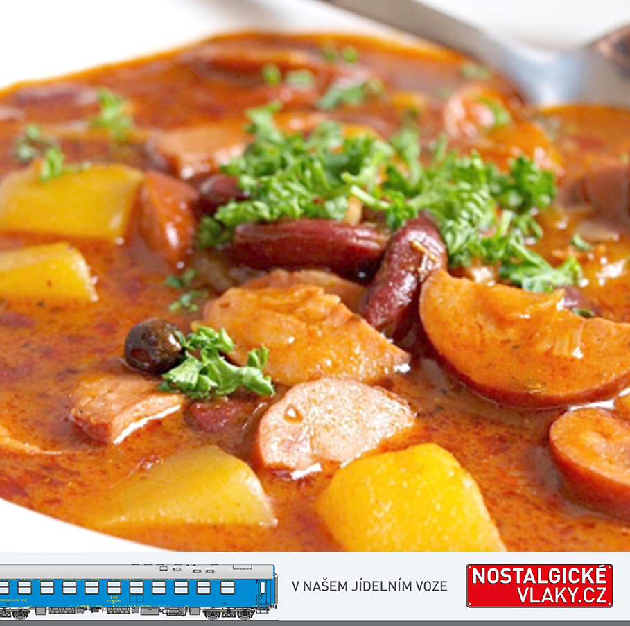 Chalupářský buřtguláš, pečivo (24.8. Oběd)